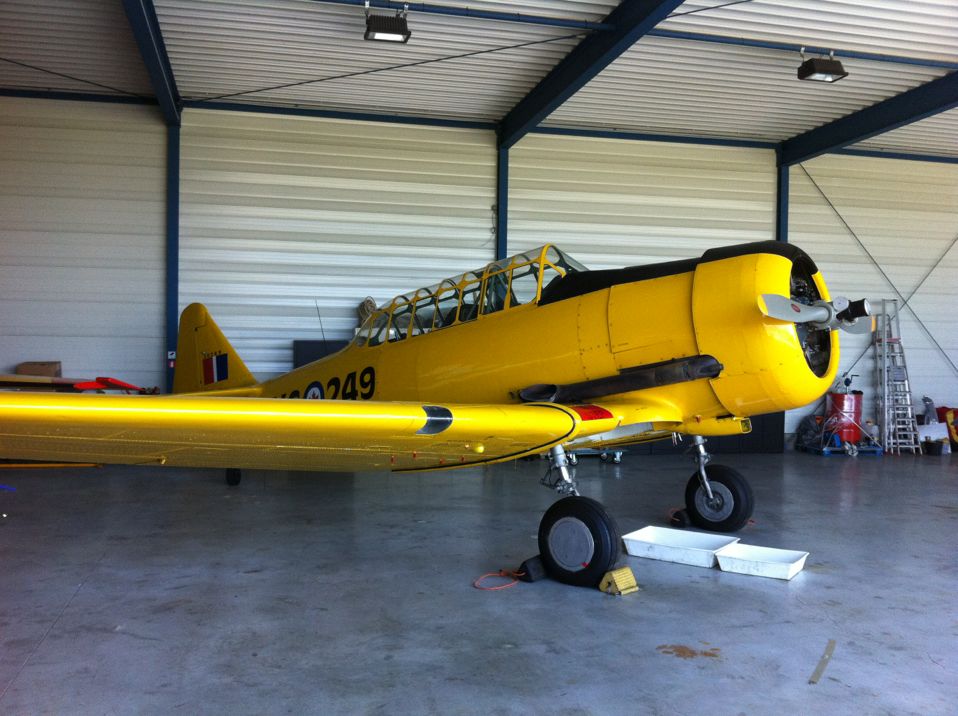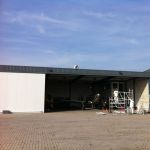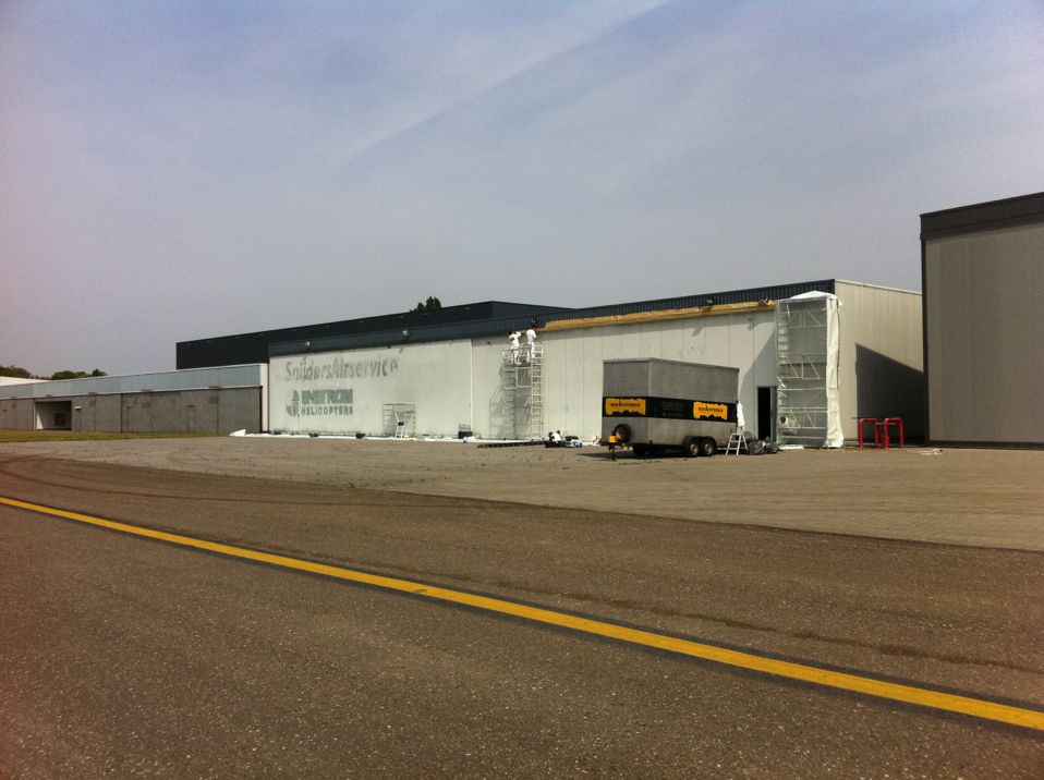 In Belgie werden wij gevraagd door een verzamelaar van historische vliegtuigen om de zojuist aangeschafte prive hangar te spuiten. Grootste probleem wat zich hier kon voordoen was verfnevel op onbetaalbare vliegtuigen.